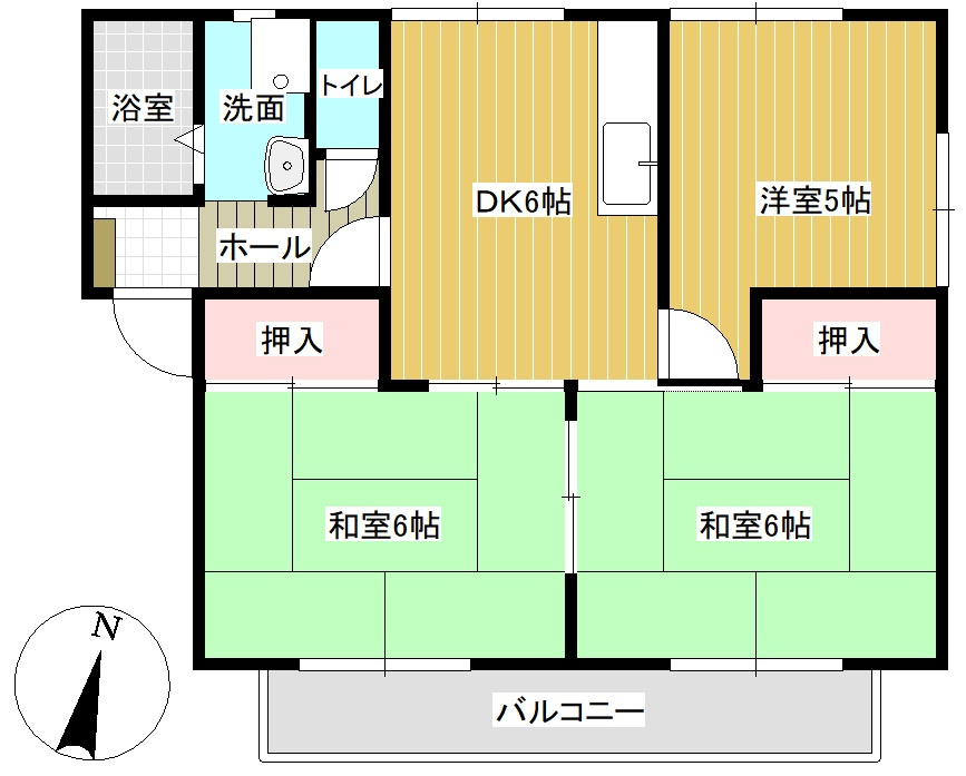 DK 6.0帖 1室/和室 6.0帖 2室/洋室 5.0帖 1室 - 向き